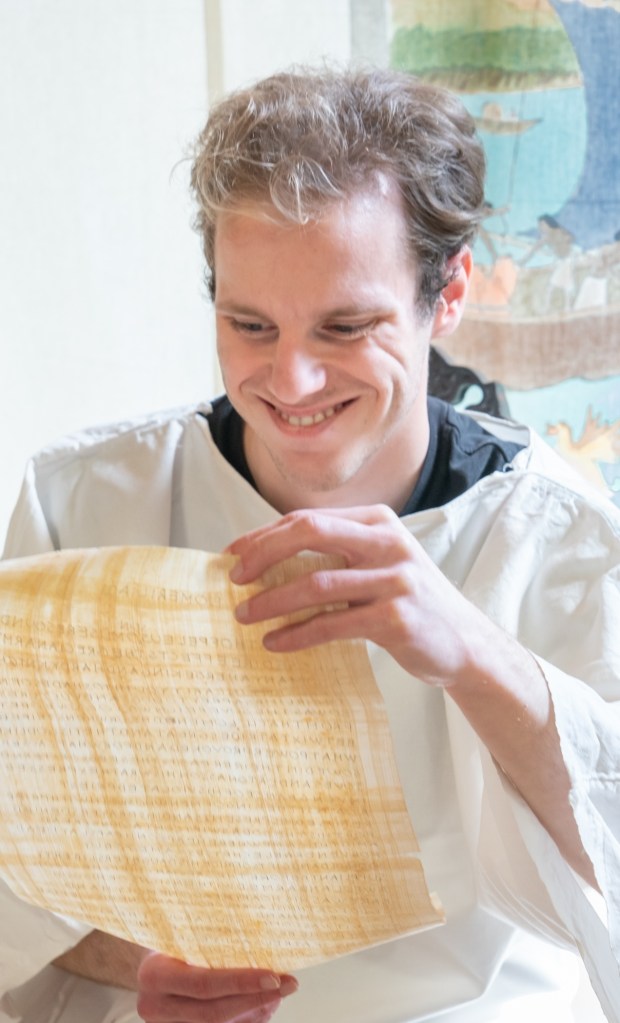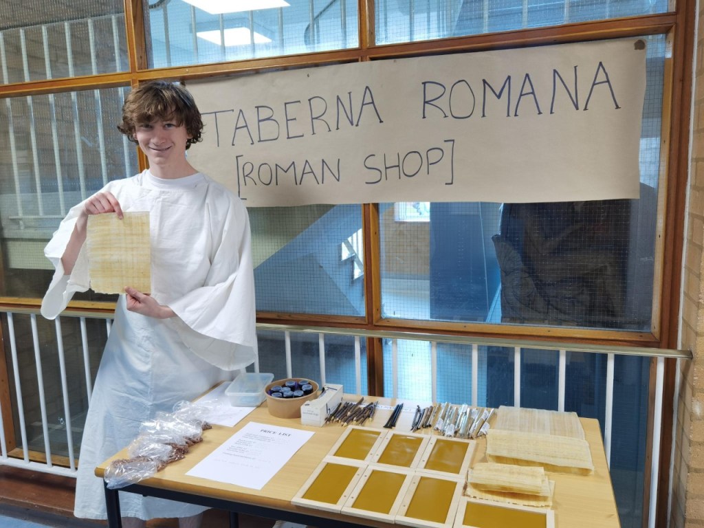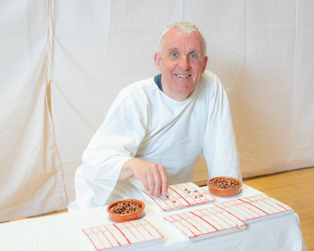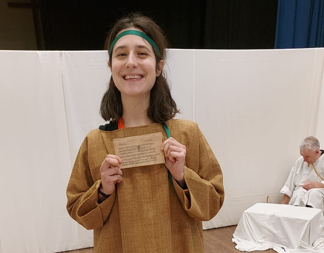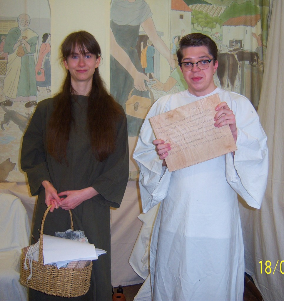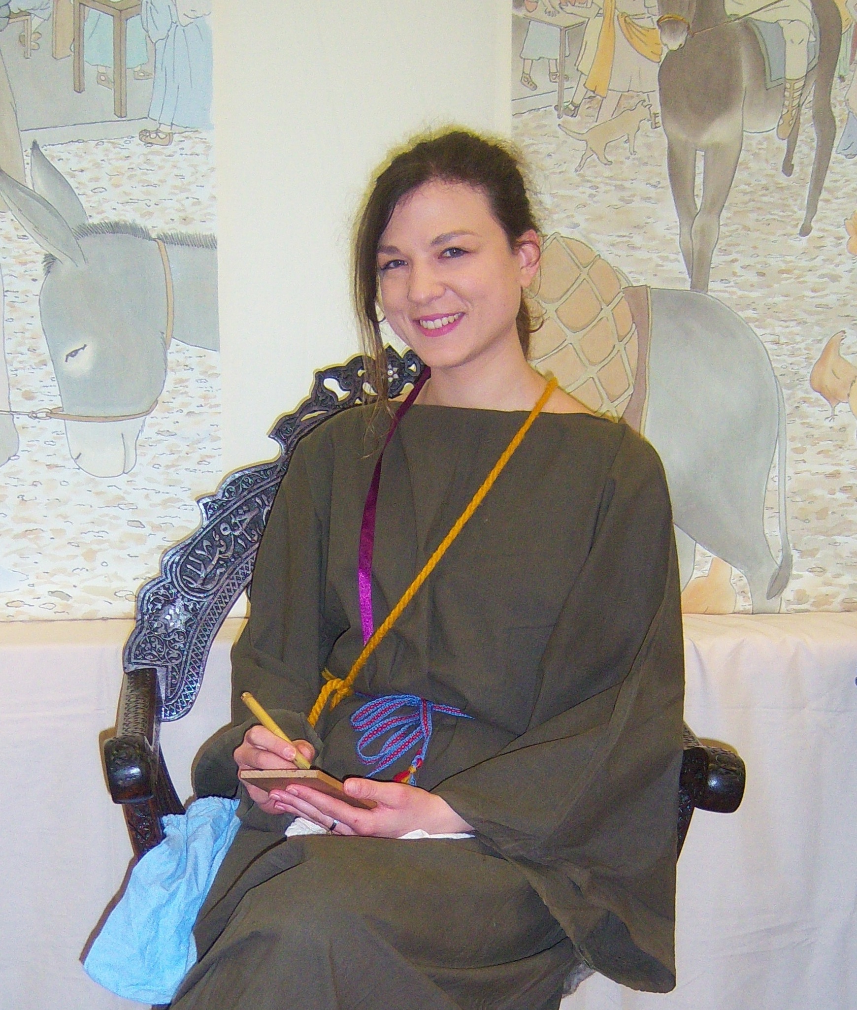 Professor Eleanor Dickey – Trustee and the person who did the underlying research (University of Reading professor). Photo by Claire SmithCharles Stewart – Trustee and the person who really makes it work (University of Reading graduate). Photo by Claire Smith.Professor Emma Aston – Trustee and the person who keeps calm when things go wrong (University of Reading professor)Professor Christa Gray – Trustee (University of Reading professor)Dr Marigold Norbye – Trustee (University College London lecturer), and Dr Sam Agbamu – Schoolroom teacher (University of Reading lecturer)Jacinta Hunter – Schoolroom teacher (University of Reading undergraduate). Photo by Claire Smith.Adel Ternovacz – Schoolroom teacher (University of Reading PhD student).Rebekah Marsh – Schoolroom teacher (University of Reading undergraduate)Alexa Wolff – Schoolroom teacher (University of Reading undergraduate)Ilaria Truzzi – Schoolroom teacher (University of Reading PhD student)Professor Philomen Probert – the person who originally designed the maths (University of Oxford professor).Althea Sovani – Schoolroom teacher (University of Oxford graduate student)Aster Blunn – Schoolroom teacher, pen carver (University of Reading undergraduate)Isabella Woor and Braedon Fogarty – Schoolroom teachers (University of Reading undergraduates)Hannah Armstrong – Schoolroom teacher (University of Reading undergraduate)Nadin Marsovszki – Schoolroom teacher and former associate director (University of Reading graduate). Photo by Claire SmithSusanna Mezzadri, Schoolroom teacherTiri Jones – Schoolroom teacher (University of Reading undergraduate)Nicholas Romanos, Krasimir Ivanov, and Oroel Marcuello – Latin-speaking schoolroom teachers at the Oxford Latinitas ancient schoolroomProfessor Daniela Colomo – Schoolroom teacher, seller of deadly curses, and former Trustee (University of Milan professor)Dr Tim Penn – Schoolroom teacher (University of Reading lecturer)Lucy French and Toria Curgenven – Costumers and (in Lucy’s case) sewing wizard (University of Reading undergradates)Rosemary Aston – the artist who made our windows (mother of University of Reading professor Emma Aston)