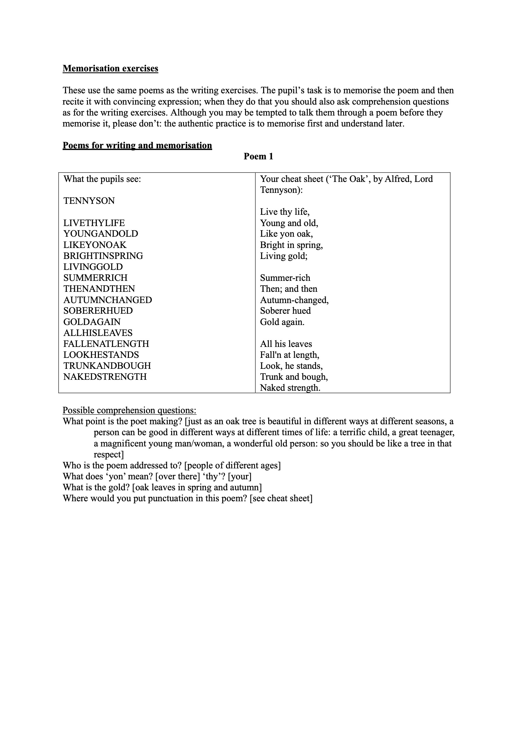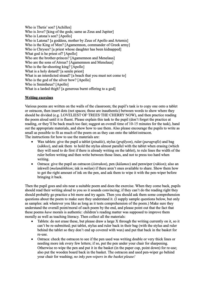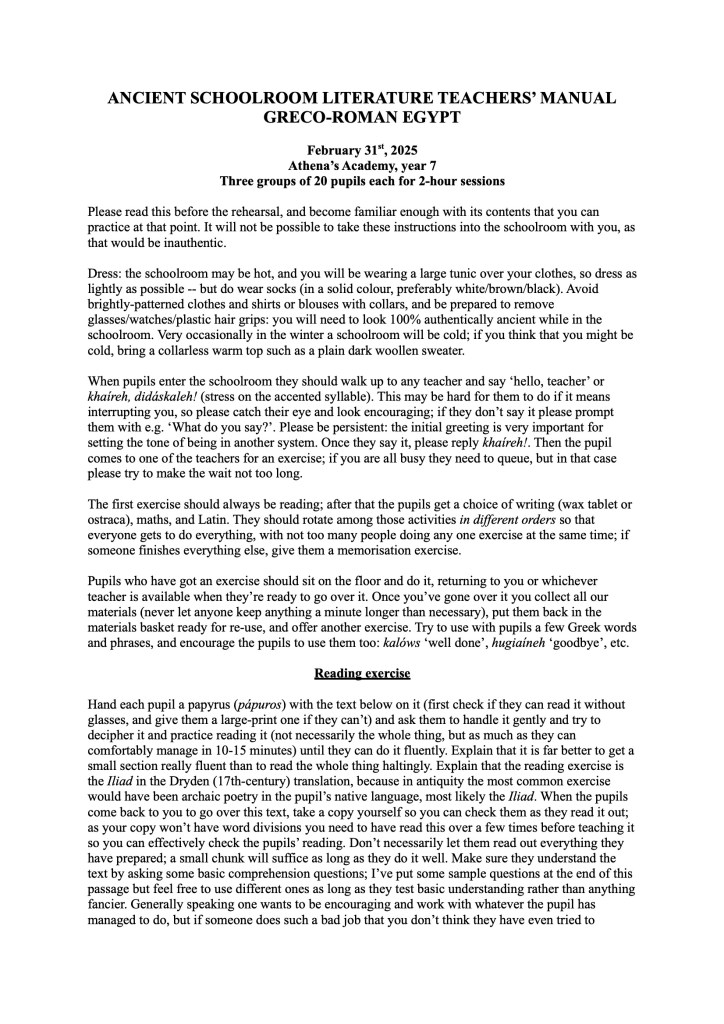 Here is an example of a teachers’ manual that we might use; as all our manuals are specific to particular events, an imaginary event has been invoked here.