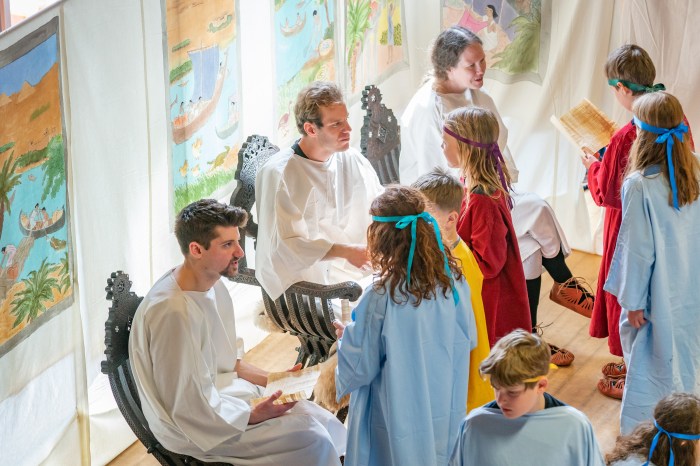 The main garment is a tunic (tunica), not a toga; in Roman times togas were worn only by aristocratic men and primarily for formal occasions, whereas tunics were the ordinary garments of ordinary people. Our tunics are made of pure cotton; although Romans in Italy and Britain tended to make their clothes out of wool or linen, cotton was used in Egypt. (Admittedly Egyptian tunics were a bit skimpier than the ones we used as models; the relief above comes from Trier in Germany, which is much colder than Egypt, and the tunics it shows were probably made of wool.) Our tunics are designed to be worn on top of participants’ regular clothing and can usually hide that clothing effectively, though people wearing long trousers may need to roll them up and everyone will probably want to remove jackets and jumpers to avoid overheating. The fabric of our tunics is simply woven as in antiquity, when knitting and other ways of making cloth stretchy had not yet been invented. This means that the tunics cannot stretch and may rip if treated like modern clothes – so please be gentle with them! The blue, yellow, white, and greenish-brown tunics were handmade by schoolroom volunteers; the red ones come from the Roman Shop. And yes, we do wash them regularly; they are much cleaner than is strictly authentic, though we are pleased by the very authentic accumulation of ink stains.